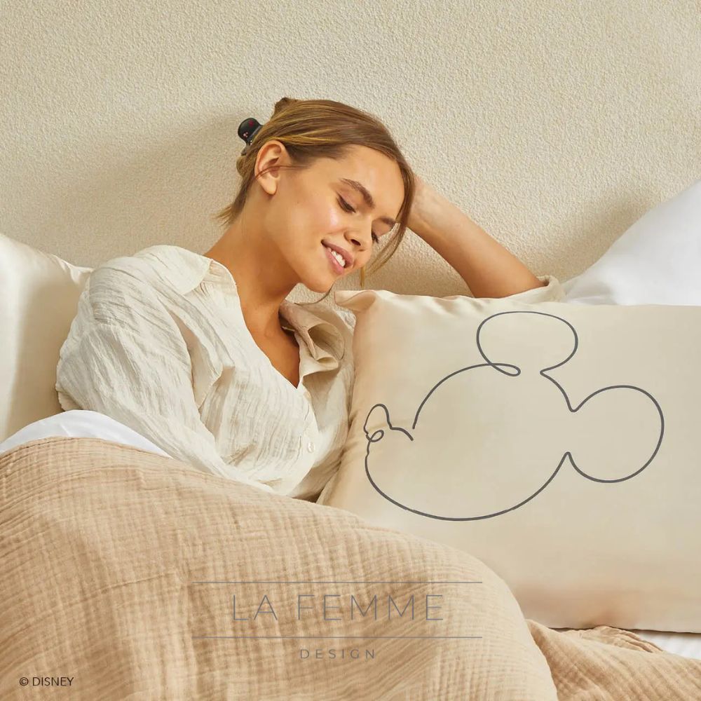 A Fronha de Cetim KITSCH x Mickey & Minnie Mr. Rato é perfeita para quem deseja unir autocuidado e charme clássico Disney na rotina de sono. O design apresenta uma silhueta icónica do Mickey Mouse, trazendo alegria e personalidade ao seu quarto, ao mesmo tempo que oferece um descanso luxuoso e confortável.